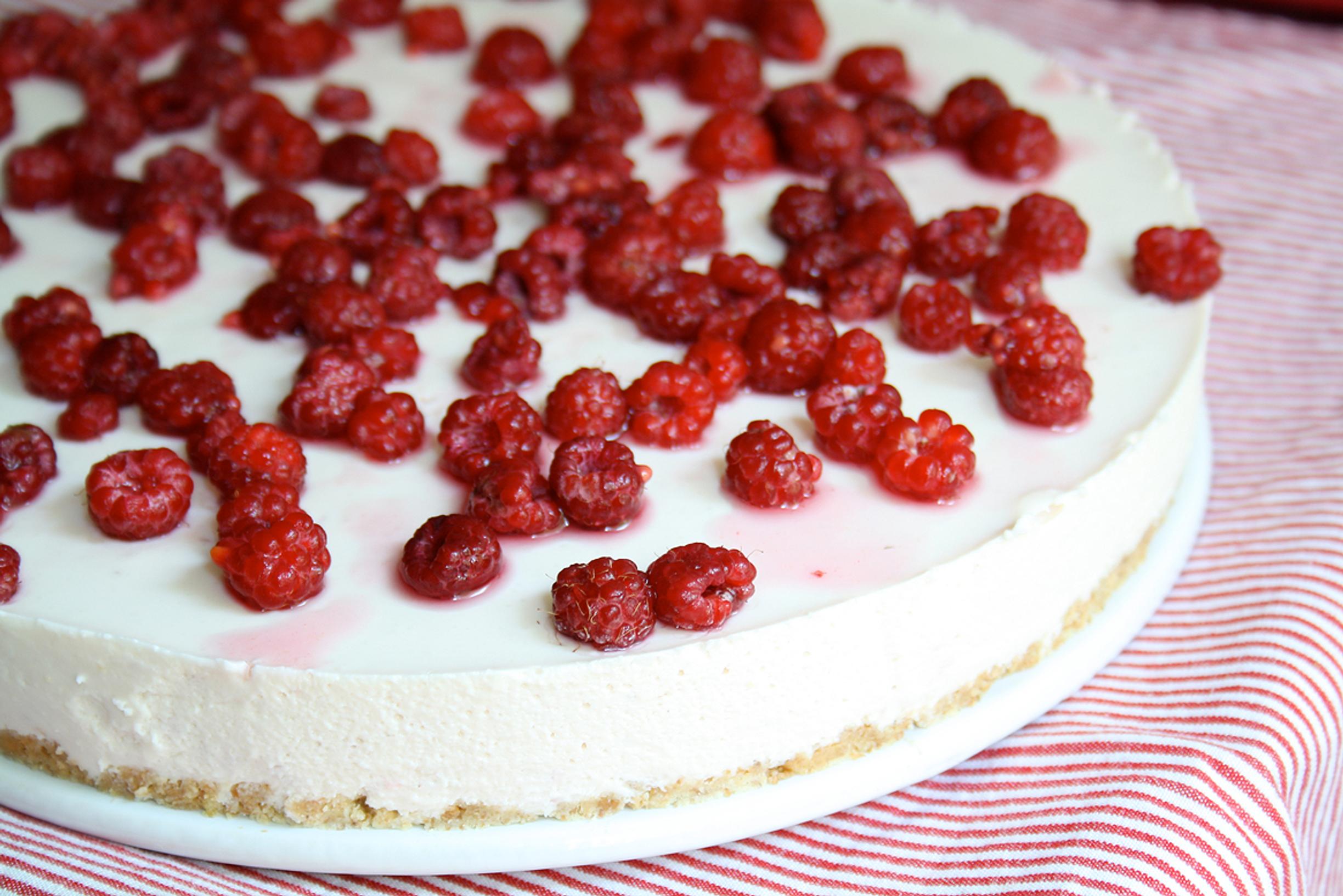 Vadelma ja valkosuklaa sopivat yhteen mitä mainioimmin, ja makuparista saa loihdittua helposti ilman uunia hyydytetyn juustokakun.