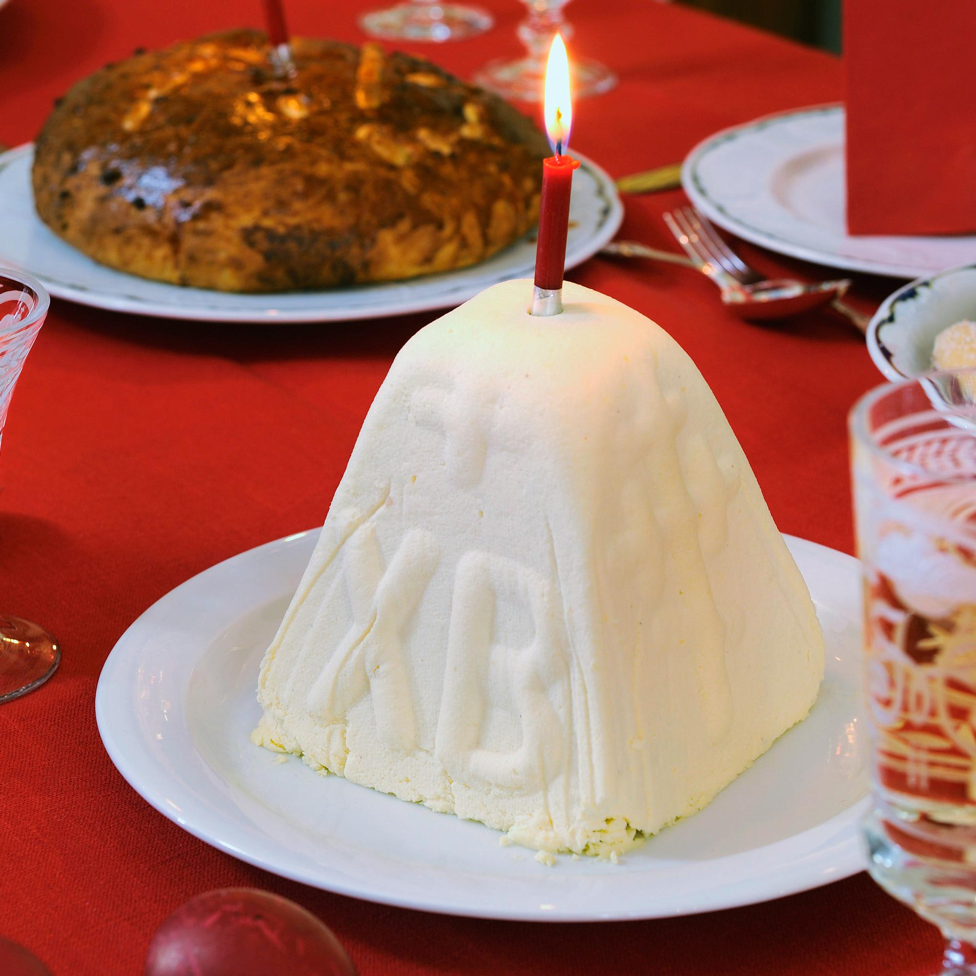 - Kumoa Valamon pasha tarjoiluvadille, poista harso ja tarjoa pasha pääsiäisaterian jälkiruokana.