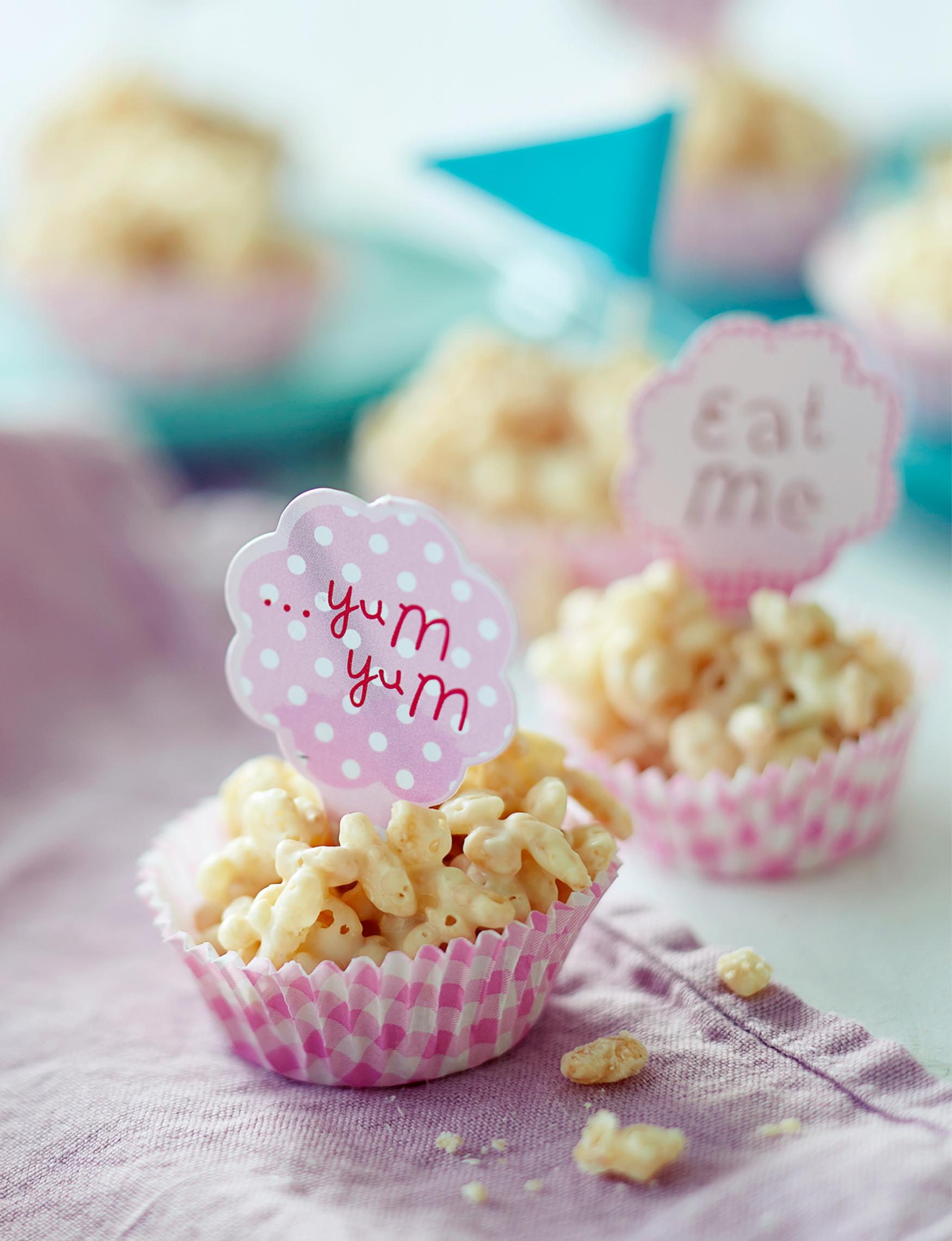 - Sekoita joukkoon riisimurot. Lusikoi massa pieniin vuokiin tai keoiksi leivinpaperin päälle.