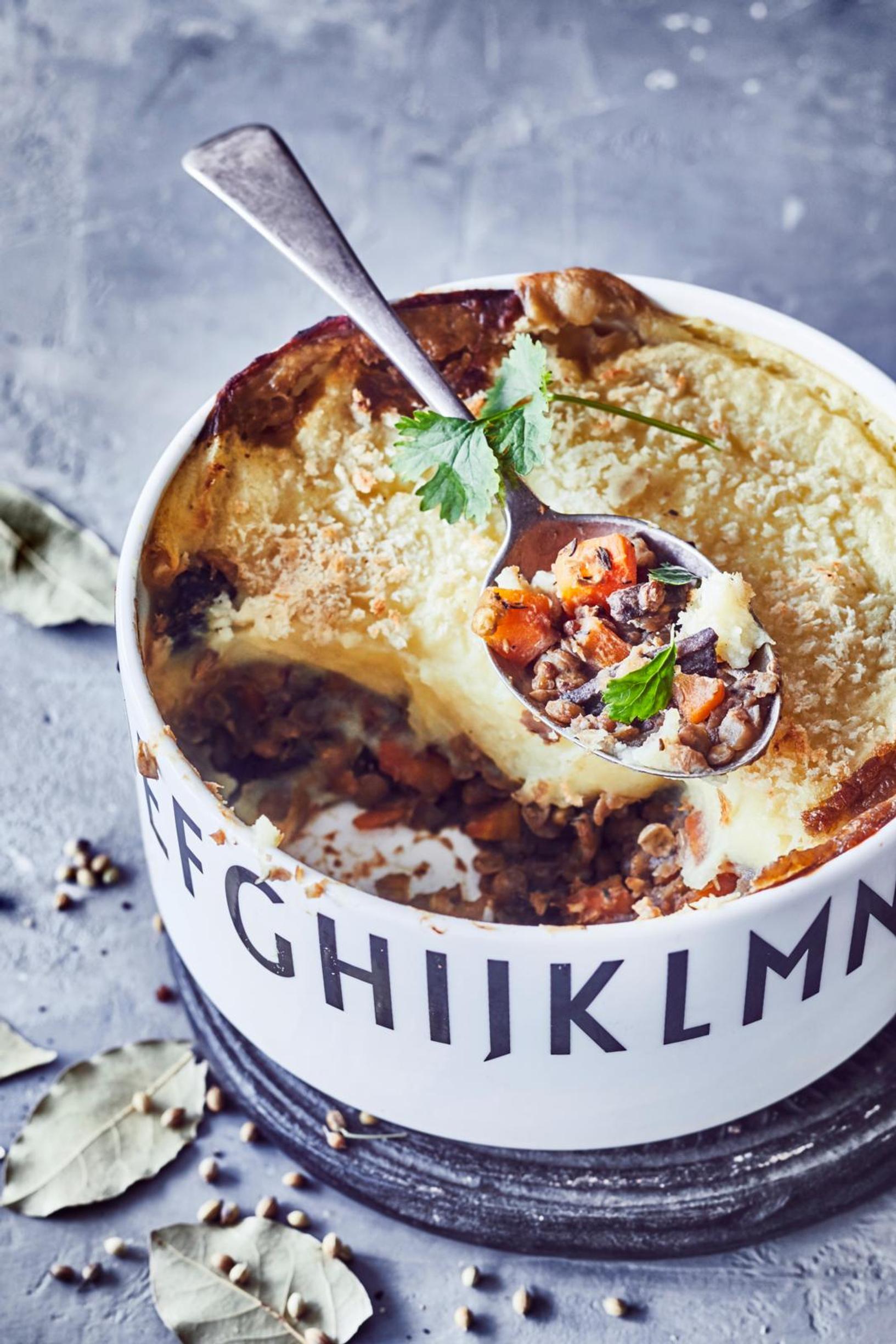 Vegaaninen paimenen paistos valmistuu helposti pakasteperunasoseesta. Reilusti maustettu kasvis-linssikastike tekee paistoksesta herkullisen. Suosittelemme!