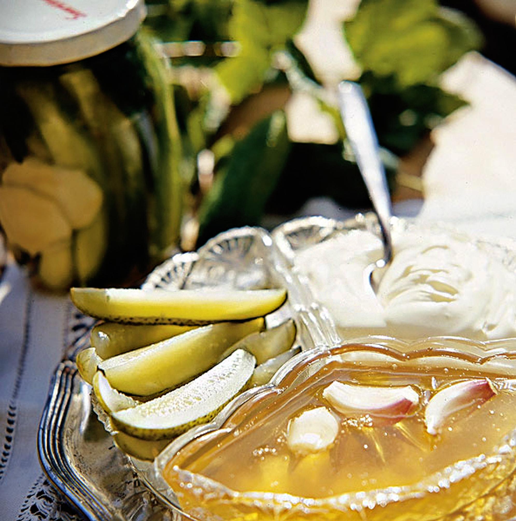 - Lado kurkkupurkin pohjalle pala hapanleipää ja sen päälle mustaherukan lehtiä (tarvitset yhteensä noin 20 kpl). Lisää kerros tillinkukintoja, piparjuurta, valkosipulia, maustepippureita ja niiden päälle kurkkuja. Toista kerrokset. Lado päällimmäiseksi kerrokseksi lehtiä.