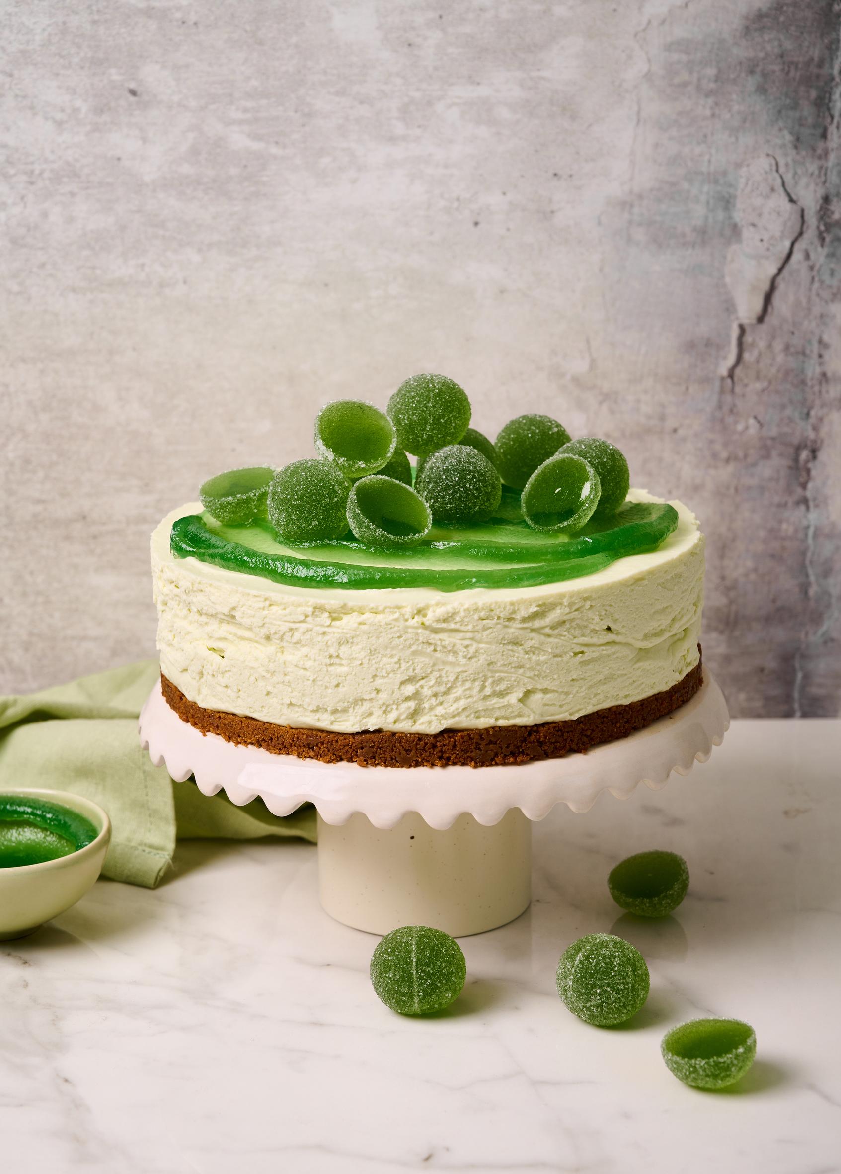 Vihreä kuula -juustokakku hurmaa samettisella täytteellään – tässä on pikkujoulujen tai joulupöydän veikeä herkku!