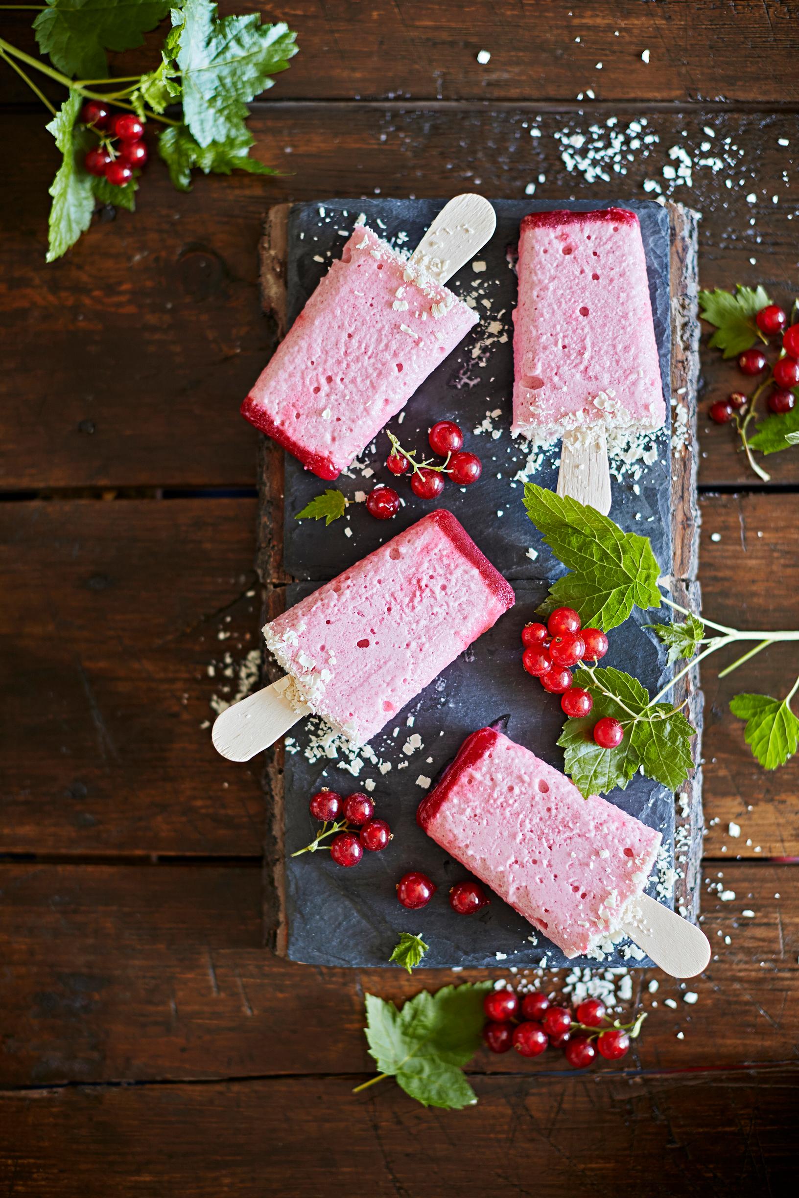 Eikö sinulla ole jäätelömuotteja? Ei hätää! Voit pakastaa vispipuuron kulhossa ja leikata valmiin jäätelön annospaloiksi. Voit korvata punaherukat lempimarjoillasi, vaikka mustaherukoilla tai puolukoilla.