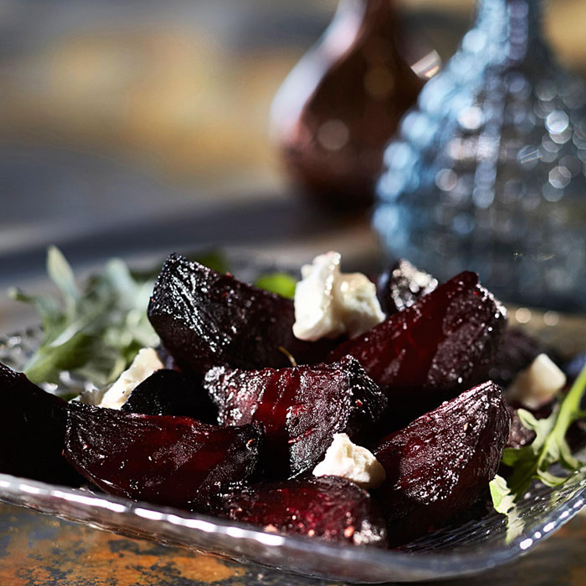- Koristele uunipunajuuret vuohenjuustolla ja rucolalla. Lorauta vuohenjuusto-punajuurien päälle balsamicokastiketta. Tarjoa heti.