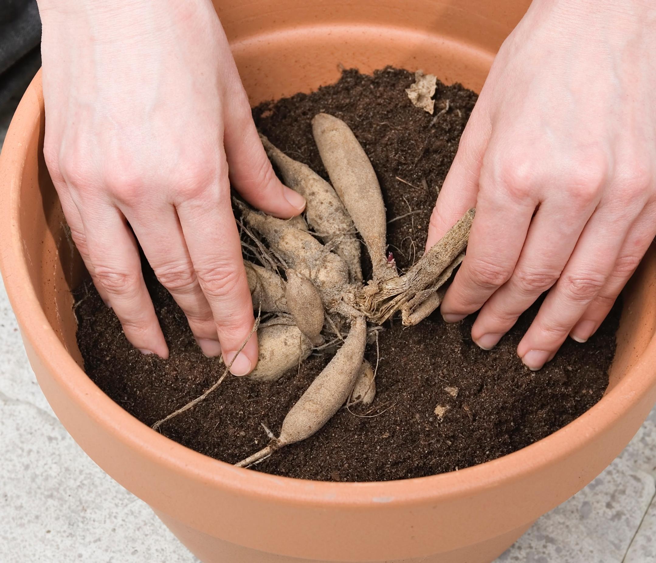 Istuta gladioluksen, tuoksumiekan, kruunuvuokon, freesian ja daalian juurimukulat sekä liljan sipulit huhti-toukokuussa.